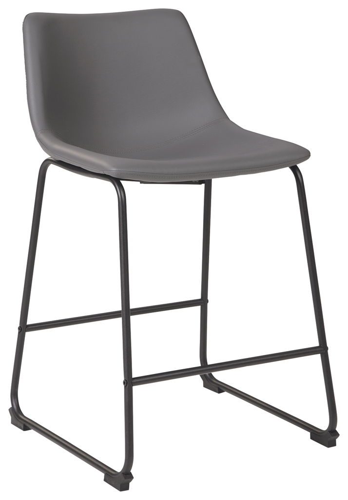 With its distinctive contoured bucket seat and tubular metal base, this upholstered bar stool serves up a fresh twist on mid-century inspired style. Practical faux leather has a charmingly vintage tone. What a timeless look for eat-in kitchens and casually cool dining rooms.