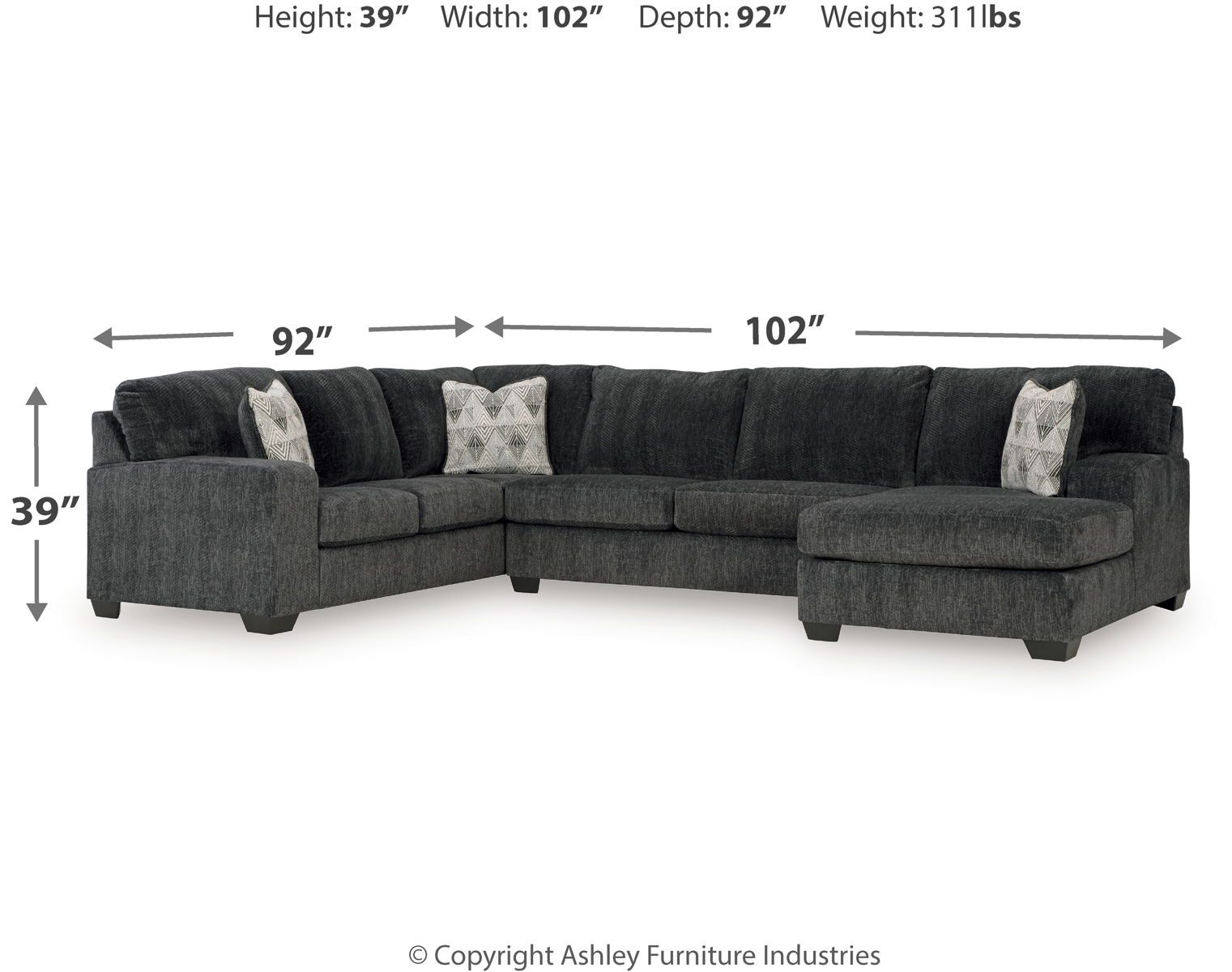 Dimensions | 102.0 × 92.0 × 39.0 in |