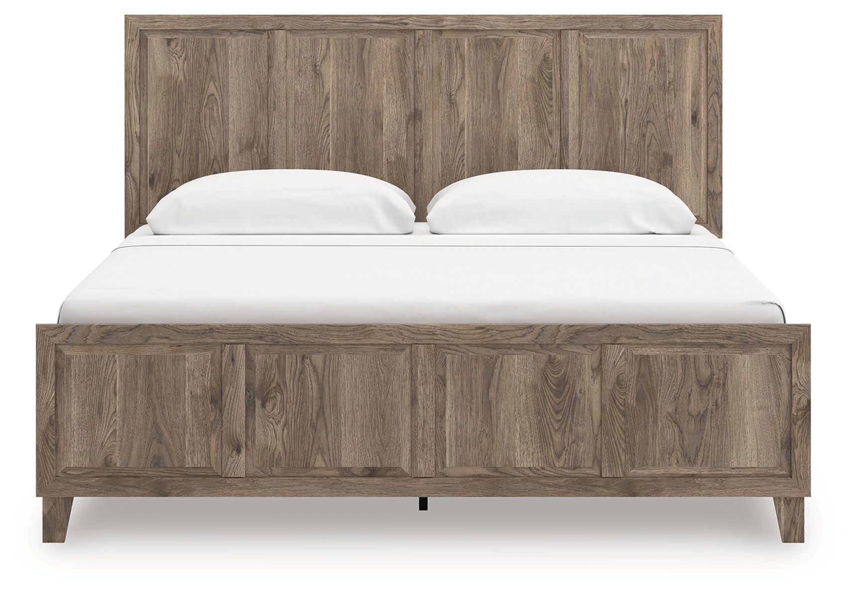 Classically chic. This panel bed marries traditional design with modern accents. Its deep finish recalls the authentic touch of hickory grain for a rich look and feel. Paneled details on the headboard add delightful dimension. Sincere in its styling, this piece sets the scene for a warm, welcoming vibe in your bedroom.